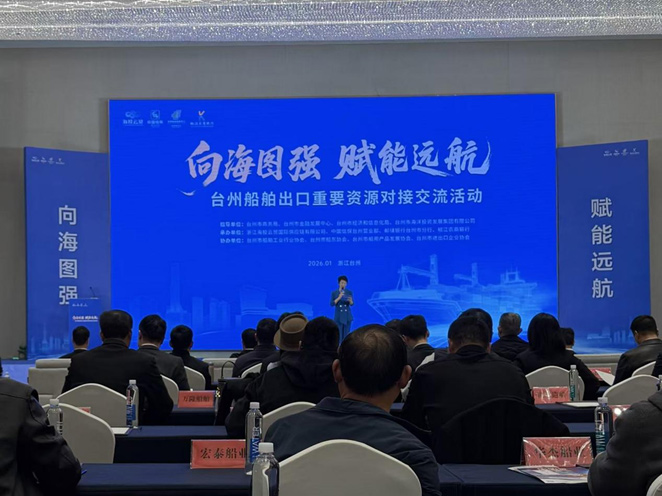 “向海图强 赋能远航 —— 台州船舶出口重要资源对接交流活动” 将于2026年1月15日14:00-17:00在台州温德姆酒店举办。活动由台州市商务局等指导,浙江海投云贸等联合承办,聚焦船舶出口全产业链,搭建政策解读、技术交流、供需对接一站式平台,助力台州建设 “长三角陆海开放智造强市”。